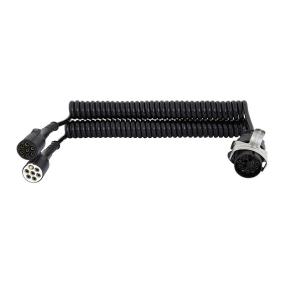 De adapterkabel heeft een 15-polige stekker aan de ene kant en twee 7-polige stekkers aan de andere kant. Hiervan is er 1 euro 'N' en 1 euro 'S'. De werklengte van de kabel is 350 cm. De spiraalkabel is gemaakt van polyutheraan (PUR) en de stekkers zijn gemaakt van gevulkaniseerd rubber. De adapterkabel heeft 37 windingen.