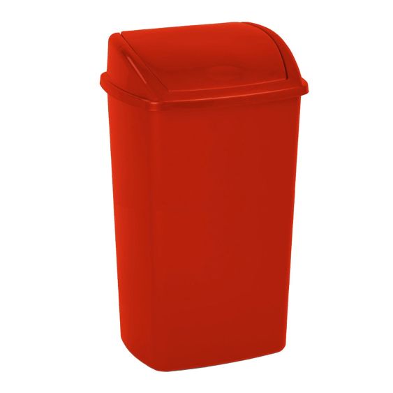 Deze rode kunststof afvalbak met swingdeksel biedt een praktische oplossing voor afvalbeheer in magazijnen en logistieke omgevingen. Met een inhoud van 50 liter is er genoeg plaats voor dagelijkse afvalverwerking.