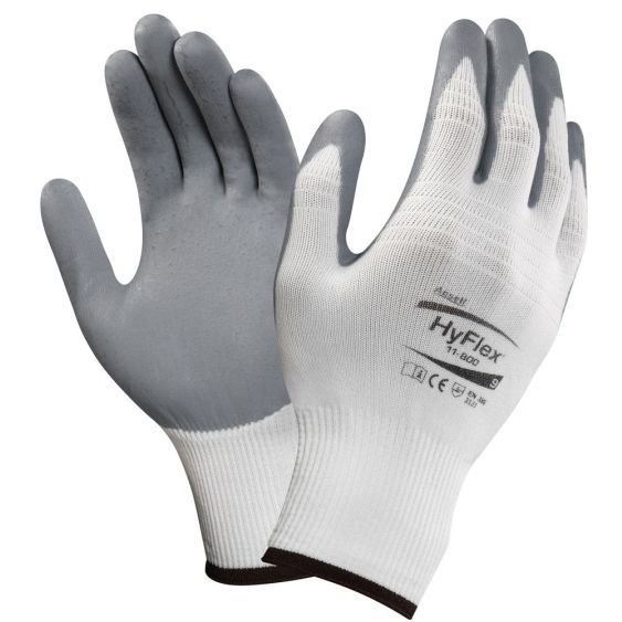 De Ansell HyFlex 11-800 werkhandschoen is een werkhandschoen vool algemeen gebruik. De palm van de handschoen is gecoat met nitrilschuim en de voering is van nylon. De handschoen heeft een elastisch manchet en geeft de perfecte balans tussen comfort, beweeglijkheid en bescherming. De hoge elasticiteit van de handschoen maakt het een uiterst prettig product om mee te werken. Dit komt door een geavanceerde breitechnologie, welke de elasticiteit en soepelheid in zwaar belaste zones van de handschoen verbetert. Hierdoor biedt de Ansell HyFlex 11-800 de gebruiker een geweldig comfort en goede beweeglijkheid voor de hand. Een ander groot voordeel van deze technologie is dat de hand minder vermoeid raakt.