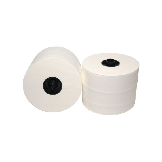Dit toiletpapier is van het merk Euro Products. Het toiletpapier op rol bevat plastic doppen aan de zijkant. Deze systeemrollen worden ook wel doprollen genoemd en worden gebruikt in combinatie met een dispenser. Twee rollen boven of naast elkaar zorgt ervoor dat de gebruikers nooit zonder papier komen te zitten. De toiletrol heeft een instelbare geleider rails, waardoor de rol af te remmen is. Dit zorgt voor een zuinig verbruik en is daarom ideaal voor locaties met een hoog aantal bezoekers per dag. Het toiletpapier is voorzien van het ECO keurmerk. De capaciteit van één rol bedraagt 65 meter. De diameter van de rol is 13 cm. Eén rol telt 565 vellen. Eén pak telt 36 rollen.