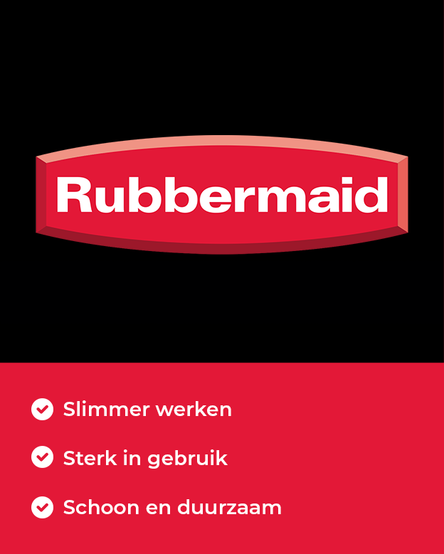 Met Rubbermaid Commercial Products kies je voor slimme en duurzame oplossingen voor schoonmaak, afvalinzameling en intern transport. Het merk ontwikkelt producten voor professioneel gebruik in onder meer logistiek, hospitality, zorg, facilitair en industrie. Daarbij draait het om meer dan alleen praktisch gemak: Rubbermaid helpt organisaties om veiliger, efficiënter en duurzamer te werken.