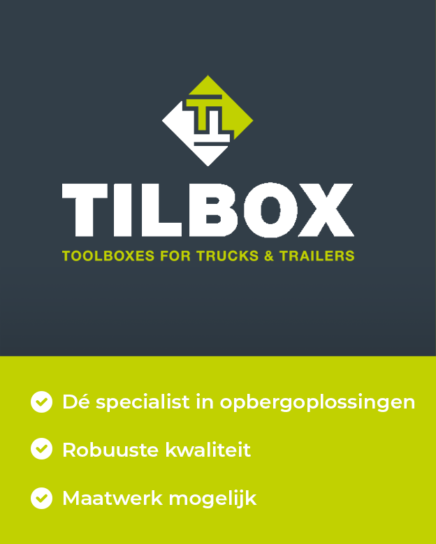 Tilbox is een Nederlands merk dat staat voor hoogwaardige, duurzame en functionele opbergkisten en gereedschapsboxen, speciaal ontwikkeld voor de transport‑ en logistieke sector. Sinds de oprichting in 1994 bouwen ze met passie aan slimme opslag‑ en opbergoplossingen voor vrachtwagens, trailers en bedrijfswagens. Het merk heeft zich in de loop der jaren ontwikkeld tot een vertrouwde partner voor professionals die efficiëntie, kwaliteit én maatwerk belangrijk vinden.