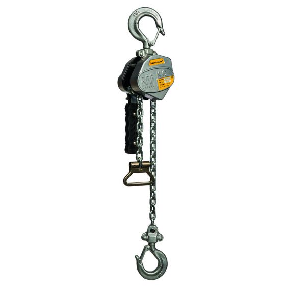 Rateltakel Delta Aluminium van het merk Delta. Een rateltakel wordt gebruikt voor het hijsen van lasten op manhoogte. In plaats van een bedieningsketting wordt er een hendel gebruikt. De rateltakel is extreem licht en compact dankzij de aluminium behuizing.