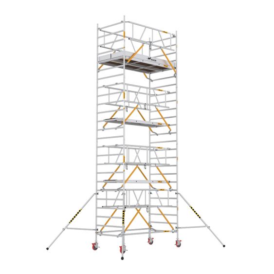 Werk veilig en efficiënt met deze robuuste rolsteiger 250 x 135 cm met veiligheidsvoorloopleuningen. Deze professionele aluminium steiger biedt een werkhoogte van 6 meter, is TÜV-gecertificeerd en voldoet aan de NEN-EN 1004 normering. Ideaal voor intensief gebruik in de bouw of installatiebranche. Dankzij de slimme voorloopleuningen werk je altijd met optimale valbeveiliging. De rolsteiger is gemaakt van hoogwaardig aluminium en voorzien van stevige antislipsporten. De telescopische stabilisatoren zorgen voor maximale stabiliteit, en dankzij het kunststof wiel met rubber (200 mm) verplaats je de steiger eenvoudig. Met een platformhoogte van 4,2 meter en een belastbaarheid van 2kN/m² (max. 750 kg) biedt deze steiger ruimte én kracht voor vrijwel elk professioneel project. Opvallende details zoals de driehoekige vleugelmoeren zorgen voor extra gebruiksgemak, terwijl kleurcodering op de pallen (geel voor horizontaal, zwart/groen voor diagonaal) het opbouwen versnelt. Het platform met groot luik is voorzien van windhaken, waardoor het altijd veilig vastzit – ook bij harde wind. De aluminium kantplanken verhogen de veiligheid en zijn opvouwbaar voor transport. Zoek je een steiger die staat voor kwaliteit, veiligheid en gebruiksgemak? Kies dan voor deze professionele rolsteiger en ervaar het verschil bij elke klus.